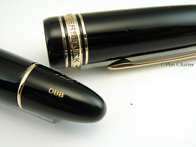 ペンは潤沢なフローのオブリーク極太字。尻軸にも”OBB”の刻印がスタンプされる。