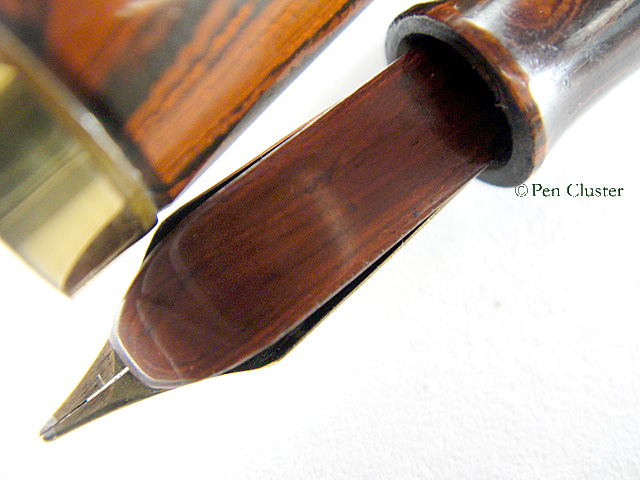 朱と黒のエボナイトのマーブル模様を巧みに制御し、さざ波(リップル)模様を作りだした。