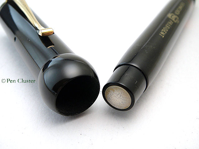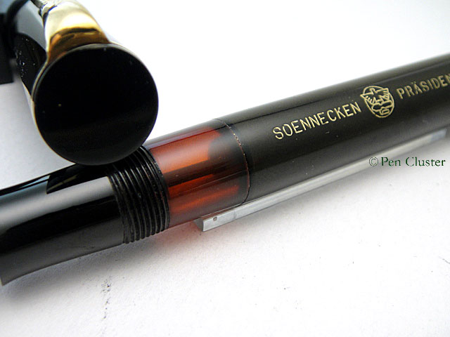 吸入は尻軸の後端を反時計まわりにひねるとカゼイン製の白いボタンを出し、