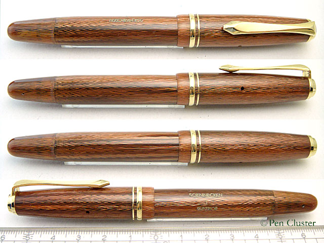 素晴らしい細工によるヘリンボーン模様のセルロイド軸は全てのカラーバリエーションが美しいが、
