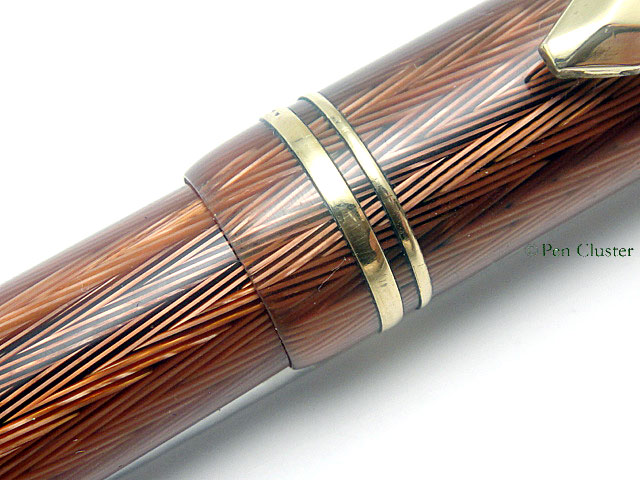 素晴らしい細工によるヘリンボーン模様のセルロイド軸。