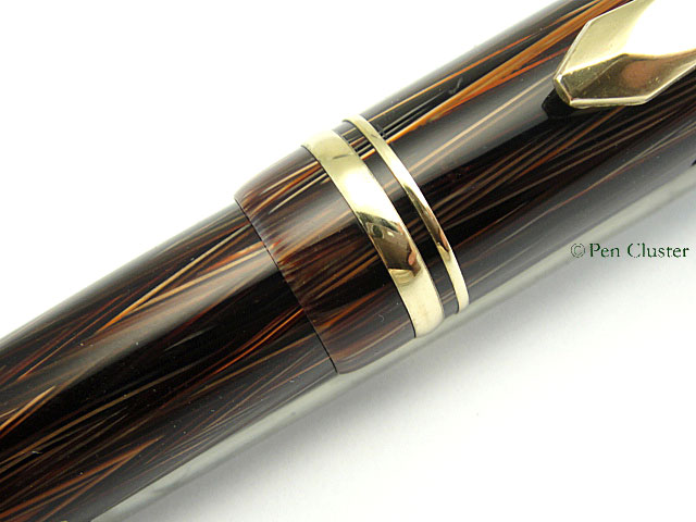 素晴らしい細工によるヘリンボーン模様のセルロイド軸は全てのカラーバリエーションが美しいが、